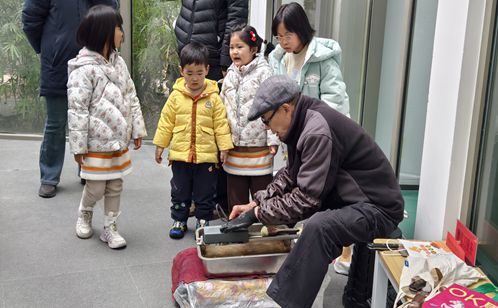 糖畫(huà)攤前最熱鬧,手藝人舀起糖稀,手腕輕轉(zhuǎn)間便畫(huà)出飛鳥(niǎo)走獸,孩子們舉著糖畫(huà)舍不得下口。糖葫蘆和棉花糖攤位也沒(méi)閑著,紅彤彤山楂裹上糖衣,棉花糖機(jī)嗡嗡作響,空氣里彌漫著焦糖甜香。這些承載童年記憶的傳統(tǒng)小吃,讓年味在舌尖延續(xù),也為即將開(kāi)啟的志愿服務(wù)月增添了溫馨底色。