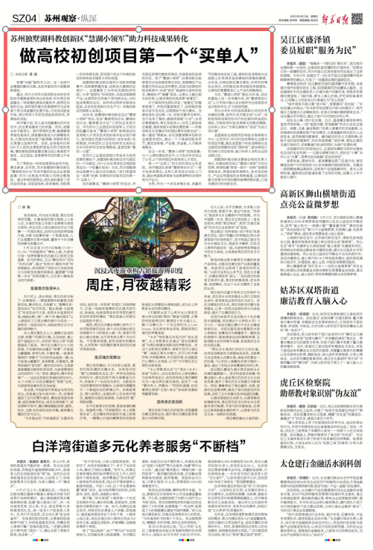 獨墅湖科教創新區是蘇州創新資源最集中、創新要素最完備、創新動力最強的區域之一。這里集聚了33所知名高校(研究院)、15家“國家隊”科研院所,科技成果高頻產出;這里同時還有數千家創新企業,對科技成果需求迫切。如何將這兩種優勢結合起來,實實在在地轉化為生產力?科教創新區的探索從未停止。