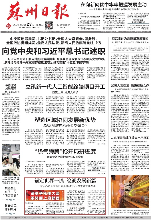 《蘇州日報》2026年02月27日A01版