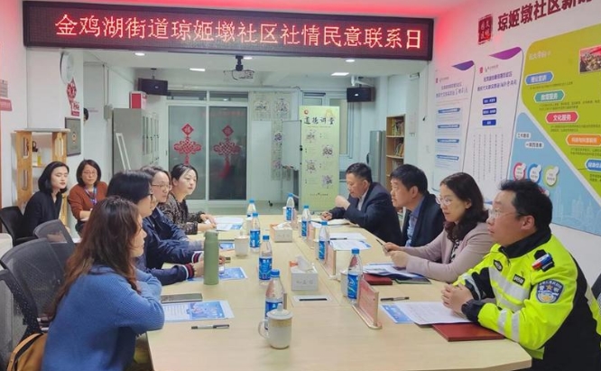 在金雞湖街道瓊姬墩社區(qū),沈磊一行與居民代表就公共交通、社區(qū)配套等事項進行了逐一討論。對于居民代表反映的環(huán)洲路幼兒園門口家長占道停車影響交通的情況,沈磊及與會領(lǐng)導(dǎo)表示,街道要結(jié)合轄區(qū)校園實際,因地制宜設(shè)置“護學(xué)崗”,為學(xué)生安全保駕護航。同時,交警部門也要加大校園周邊,特別是上學(xué)、放學(xué)時段的道路巡邏管控力度,引導(dǎo)家長文明停車,保障停車秩序,緩解通行壓力。