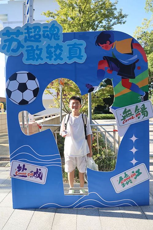 七年級新生的入校儀式則與今夏熱門話題“蘇超”緊密相關。在校園西側,蘇超十三城的球衣迎風舞動,學生們一邊回憶著賽事的精彩,一邊與喜歡球隊的球衣合影。星灣學校副校長杜紅芳介紹:“學校希望通過這種安排,讓孩子們感受運動員團結奮進、努力拼搏的精神,成為有擔當、有勇氣、有信念、有信念的星灣學子。”