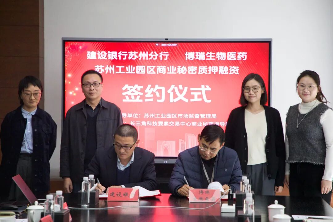 近期,博瑞生物醫藥(蘇州)股份有限公司與中國建設銀行蘇州分行商業秘密質押融資簽約儀式在蘇州自貿片區舉行,協議的成功簽訂標志著片區探索無形資產融資新模式的實踐邁出堅實一步。