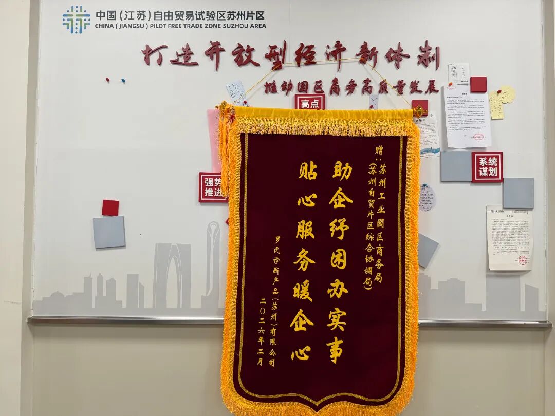春潮涌動啟新程,服務暖心促發展。近日,世界500強企業、全球診斷領域龍頭羅氏集團在華全資子公司羅氏診斷產品(蘇州)有限公司相關負責人專程來到蘇州自貿片區,送上一面致謝錦旗,以此表達對蘇州片區長期以來在企業發展道路上給予的全方位鼓勵與支持的誠摯謝意,尤其點贊蘇州片區在通關便利化推進、生物醫藥全鏈開放創新等方面為企業紓困解難、保駕護航的一系列創新政策。