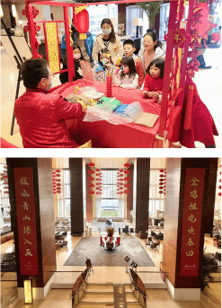 Jinji Lake Grand Hotel decorated its lobby with Chinese knots, red lanterns and other decorations. Dragon and lion dancing performances were staged, and diverse events were held following folk customs.