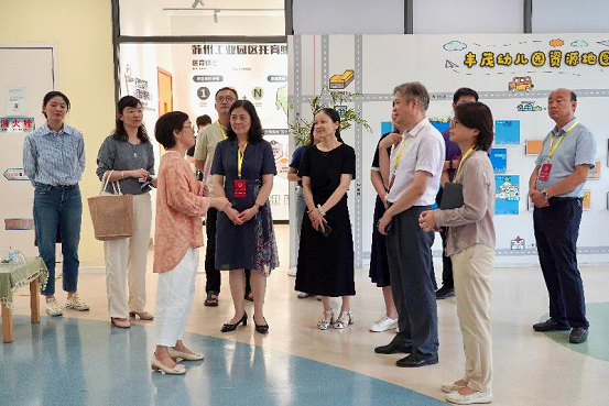 The survey team visited a daycare center for children and a kindergarten, learning about their operation modes, staffing, curriculums and routine safety management.