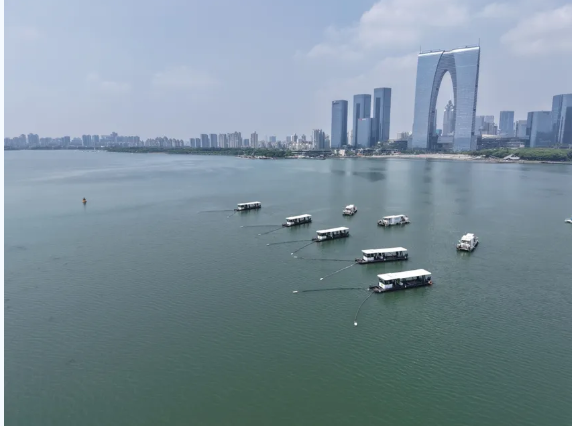 近日,市政服務集團在金雞湖、獨墅湖、陽澄湖等重點水域開展2025年度藍藻防控應急演練。本次演練以“多源突發(fā)、全域聯(lián)動”為情景設定,模擬多處核心水域同時出現(xiàn)藍藻集聚。演練中,城維人員依托高空無人機巡航,結(jié)合巡視員開展全域巡查,迅速完成藻情發(fā)現(xiàn)和風險研判。精準調(diào)度28艘專業(yè)打撈船只和120余人的作業(yè)隊伍快速響應,高效開展“巡查預警-調(diào)度指揮-打撈處置-無害化處置”全鏈條標準化作業(yè),為進一步配合生態(tài)環(huán)境部門做好藍藻防控下好“先手棋”。