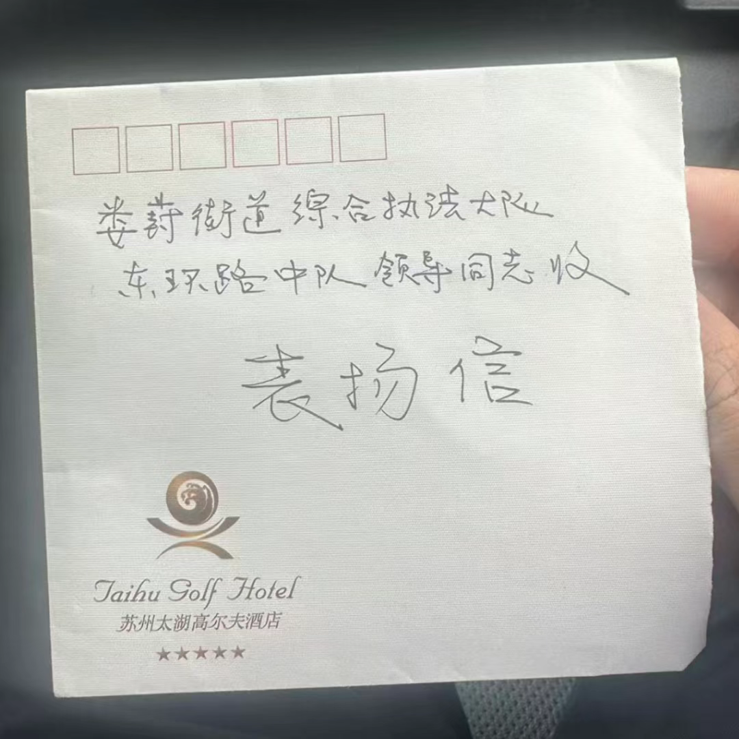 近日,婁葑街道綜合執法大隊隊員許霄、陳紫陽收到一封老人的感謝信。原來,老人之前在東環路美好廣場存在非機動車輛違規停放的行為。當日,因現場無法找到車輛所有人,車輛已被執法人員暫時停放至指定停車場?,F場設置有禁止非機動車輛違規停放的提示牌,提醒市民規范停放,告知市民取車等相關信息。次日,老人主動向隊員許霄、陳紫陽咨詢,當了解到老人身體不適,無法前往指定停車場時,許霄、陳紫陽主動將老人送至停車場,協助老人順利辦理了取車手續。并將老人和車輛安全送回美好廣場。老人深受感動,專程送來表揚信,對公正執法和熱心幫助表示衷心感謝。