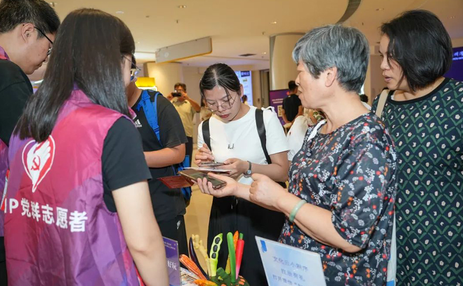 在園區(qū)公文中心服務點位前,黨員志愿者邀請現(xiàn)場市民共同暢游文化服務的云端驛站——2.0版本“文化云”小程序。云看展、云賞藝、云悅讀、云賽場等一站式“可看、可約、可互動”的線上文化大餐讓人眼前一亮,帶來了優(yōu)質(zhì)的文化體驗。