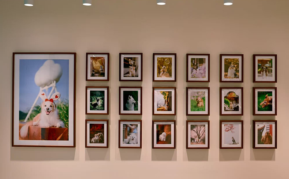 不同于“初二家”的萌趣溫馨,隔壁的“芒果寵物攝影”則是滿滿的文藝范兒和“ins風”,店內的墻上掛滿了毛孩子們在各地撒歡的藝術寫真,內景棚也根據不同主題布置得十分精美?!拔覀兊臄z影師擁有豐富的寵物拍攝經驗,并且會基于每只寵物的習性進行引導拍攝。”品牌主理人蝦仁認為,家長與毛孩子相處的每一個瞬間都是值得被記錄的幸福時刻:“我們想用影像記錄下毛孩子們的美好。”