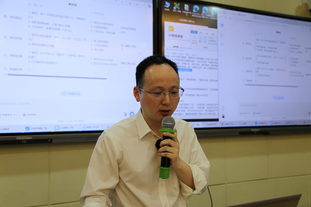 活動(dòng)第三階段,星洲小學(xué)周學(xué)平老師帶來專題講座《AI賦能小學(xué)語文教學(xué)》。周老師潛心教育教學(xué)研究,專注信息化創(chuàng)新應(yīng)用,兩個(gè)小時(shí)的講座以實(shí)踐為主,呈現(xiàn)了AI在語文課的課前、課中、課后等教學(xué)場景的應(yīng)用:利用企業(yè)微信收集表設(shè)計(jì)問卷;備課中引入deepseek輔助并在強(qiáng)化邏輯、追問、細(xì)化中逐步完善;數(shù)字人的應(yīng)用;互動(dòng)小游戲等等,一系列可視化操作讓所有參與教師收獲滿滿。